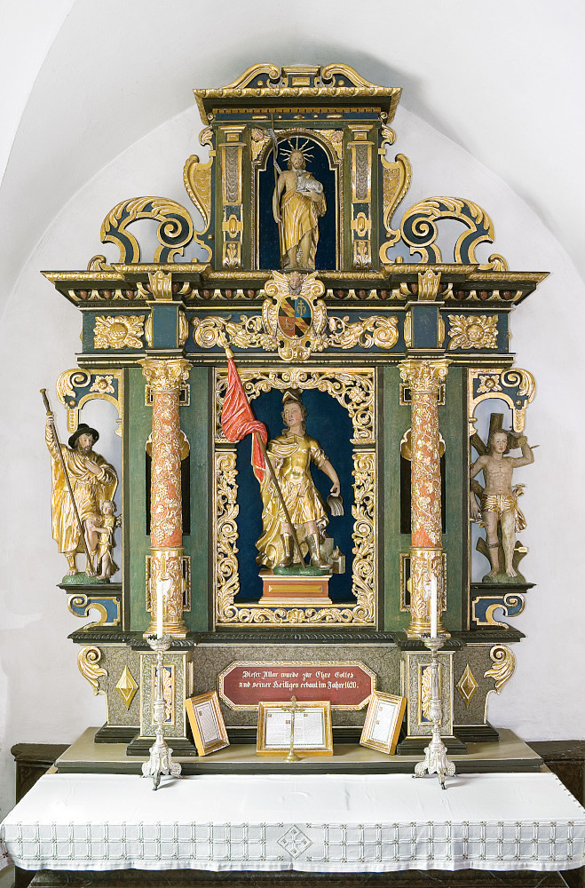 Zeitgleich oder wenig später entstand der vergoldete Tabernakelaltar im Südschiff. Formal passt dieser Altar nicht zu den beiden anderen Altären der Spitaler Kirche sondern viel eher zum Neuberger Hochaltar, so dass die Vermutung nahe liegt, dass er ursprünglich eigentlich gar nicht für die Spitaler Kirche bestimmt war. Um 1720 entstand schließlich noch die Kanzel beim Volksaltar. Auffallend ist das fehlende Schalldach der Kanzel.